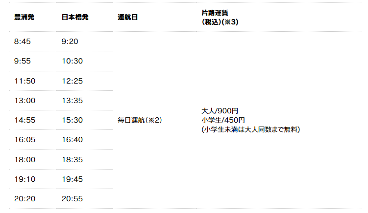 (※1)上記運航スケジュールは、河川内工事や天候等の影響により、変更が生じる可能性があります。